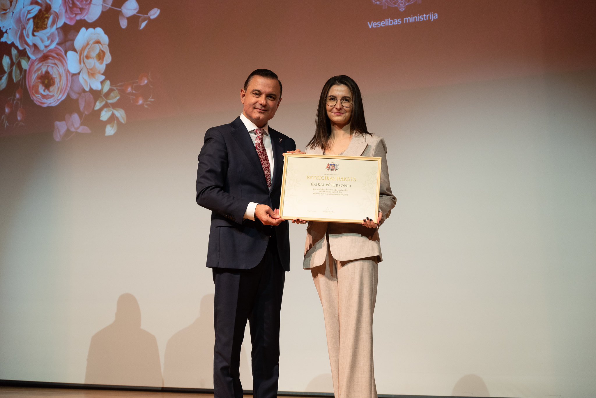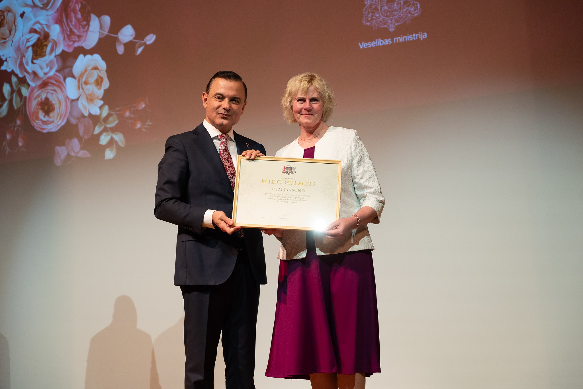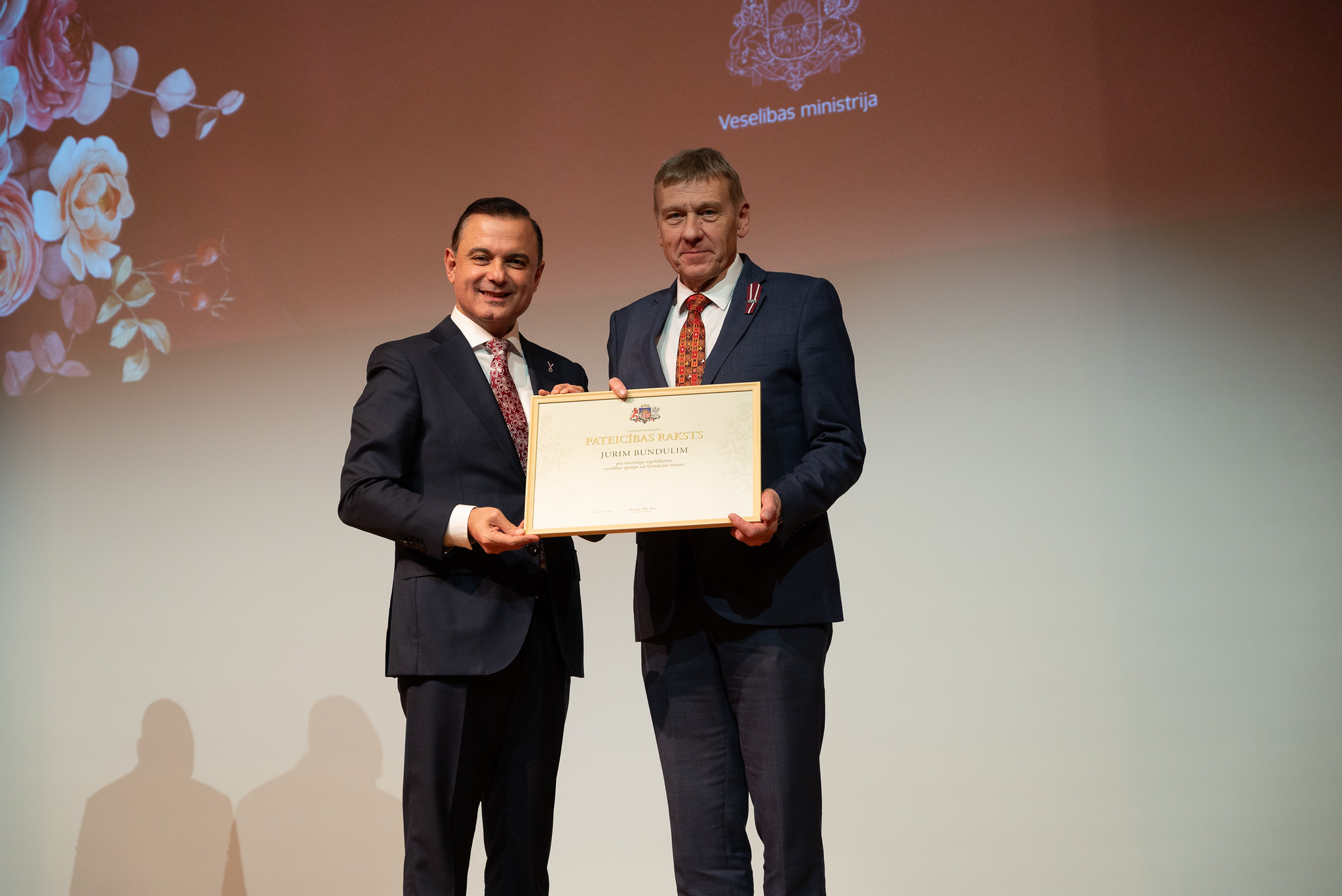 Lai godinātu izcilus veselības aprūpes, sabiedrības veselības un farmācijas jomas profesionāļus par viņu nozīmīgo ieguldījumu Latvijas veselības sistēmas stiprināšanā un attīstībā, piektdien, 7. novembrī, notika svinīgā apbalvošanas ceremonija, kurā veselības ministrs Hosams Abu Meri pasniedza Ministru kabineta Atzinības rakstus, kā arī Veselības ministrijas Atzinības un Pateicības rakstus.