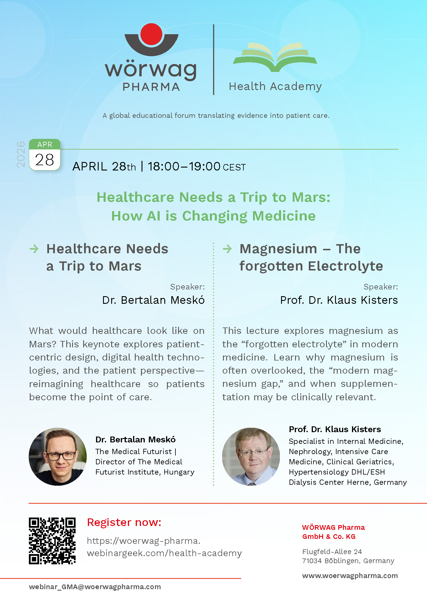 Aicinām pievienoties tiešsaistes semināram, kur starptautiski eksperti dalīsies ar ieskatu par mākslīgā intelekta ietekmē uz veselības aprūpi un magnija nozīmi mūsdienu klīniskajā praksē. Pievienojieties 28. aprīlī plkst. 19.00 pēc Latvijas laika.