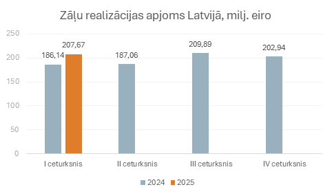 Zāļu lieltirgotavu kopējais zāļu apgrozījums 2025. gada pirmajā ceturksnī Latvijā bija 207,67 milj. eiro bez PVN. Salīdzinot ar pagājušā gada pirmo ceturksni, tas audzis par 11,6%, bet, salīdzinot ar iepriekšējo ceturksni – pieaugums bijis 2,3%.