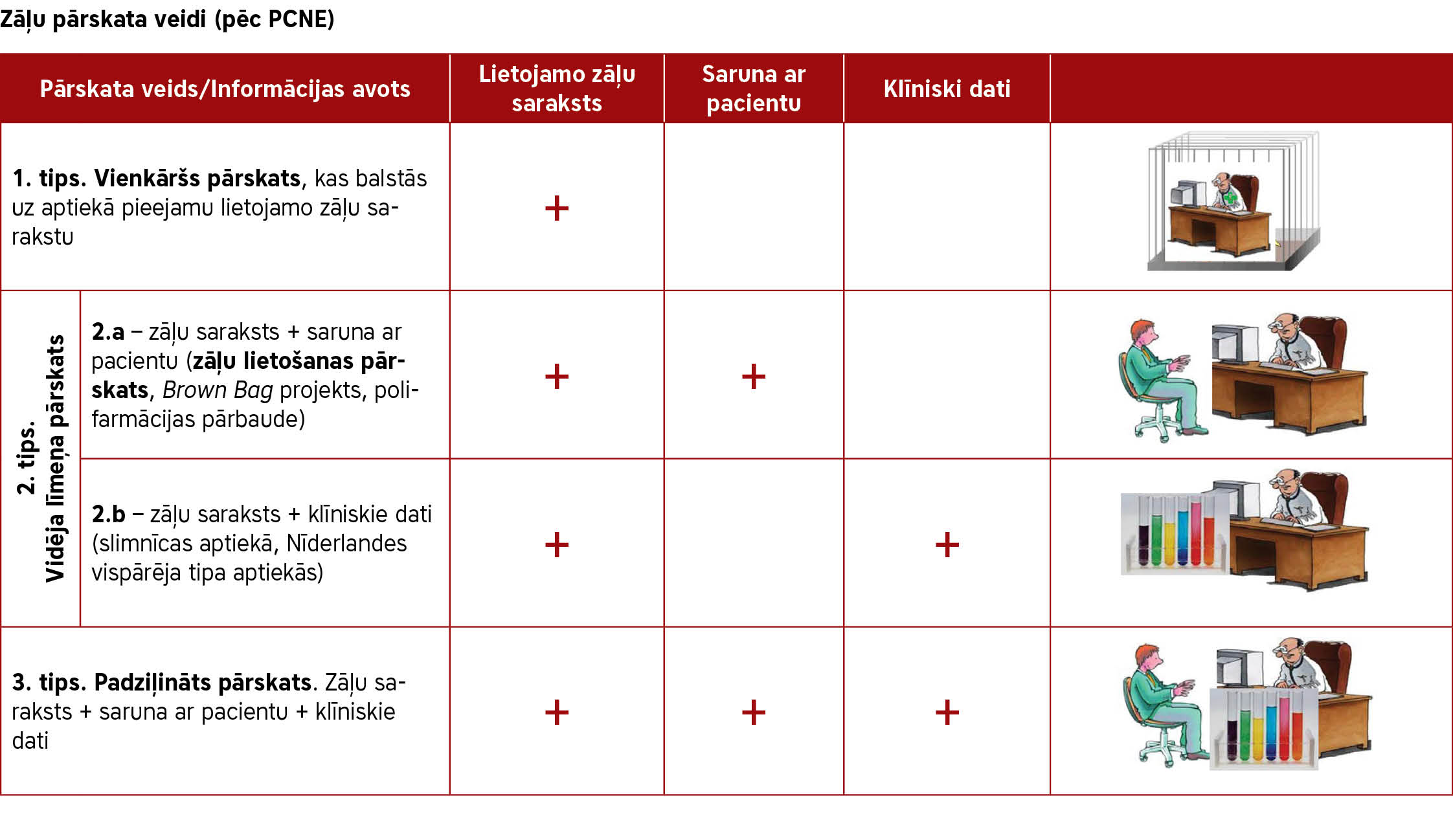 Jaunākais starptautiskais dokuments par ZLP ir 2024. gada novembrī publicētās Eiropas Zāļu kvalitātes un veselības aprūpes direktorāta (European Directorate for the Quality of Medicines & HealthCare, EDQM) vadlīnijas (2). Minētās EDQM vadlīnijās izmantots jēdziens zāļu pārskats (medication review), ko var īstenot trīs līmeņos. Vienkāršā zāļu pārskatā tiek analizēts lietoto zāļu saraksts, vidēja līmeņa pārskatā ietver arī pacienta sniegtu informāciju un dažkārt klīnisku informāciju, bet padziļinātā pārskatā pacienta farmakoterapijas un klīnisko datu kopums kalpo par pamatu izsmeļošai situācijas izpētei.